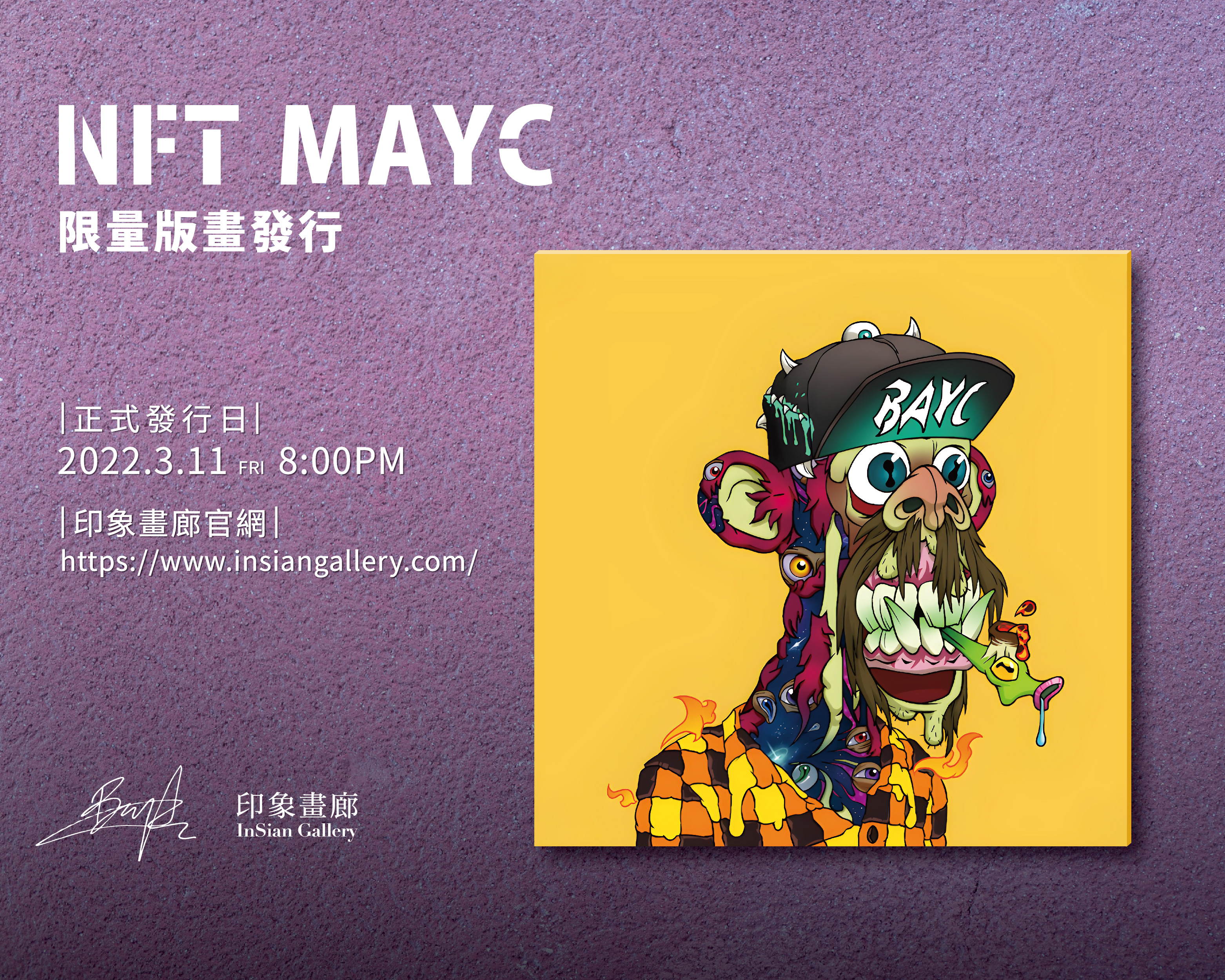 印象畫廊:【NFT MAYC 宇宙眼棒球帽變異猴限量版畫發行】